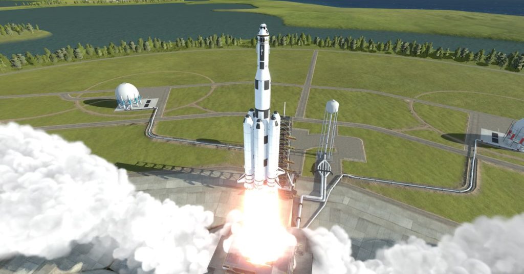 La modalità sandbox mi offre una vasta gamma di opzioni per le parti della nave, distribuite su diverse schede per tipo di pezzo. Voglio un modulo di comando che accolga uno o più Kerbal? E potrei trovare il giusto tipo di motore per lanciarlo nello spazio? Il ciclo fluido del gioco tra la costruzione e il lancio, insieme ai suoi strumenti intuitivi e facili da usare, ne fanno una serie di esperimenti soddisfacenti, anche se torni a Kerbin ancora e ancora. Sebbene tu possa posizionare parti su una nave con qualche intento estetico, alla fine si inseriscono in un perfetto allineamento. C’è anche lo strumento di simmetria, che ho usato per posizionare quattro ali in punti equidistanti attorno alla circonferenza della mia nave: a quanto pare, posizionarle manualmente era il motivo per cui le mie navi continuavano a far esplodere sapori nell’aria ad angoli strani.