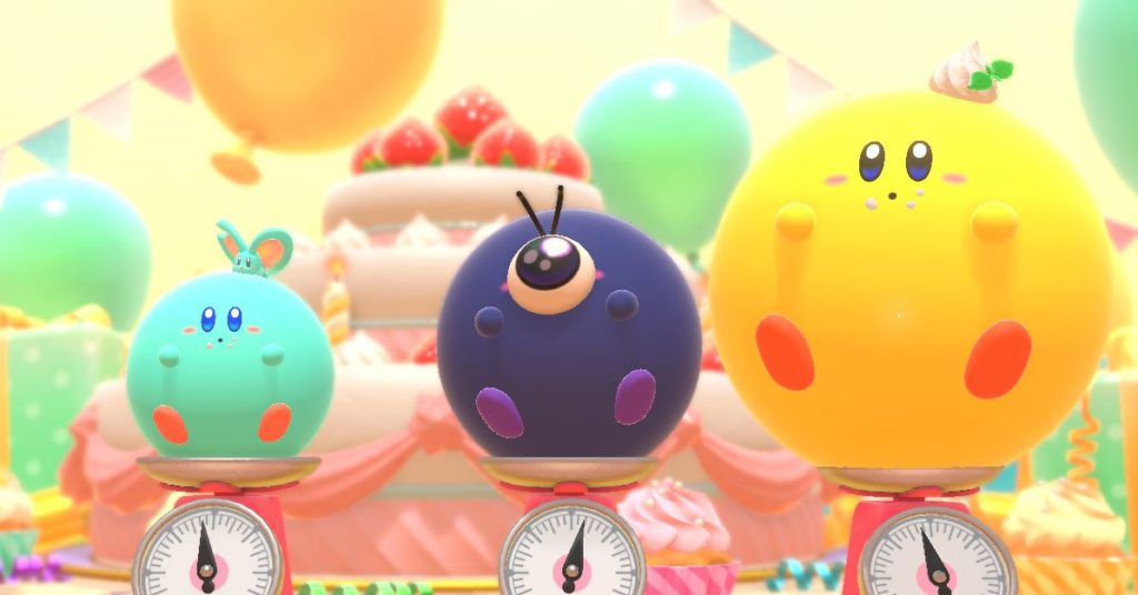 Sto rotolando su cubetti di gelatina, indossando un adorabile ciuffo di panna montata sulla mia testa. Intorno a me, molti altri Kirby in una gamma di colori – alcuni che indossano Carby come un cappello, che spero di sbloccare presto – salutano e dicono “ehi”. Questi altri giocatori ed io siamo nella lobby d’attesa per Kirby’s Dream Buffet, e presto ci scontreremo in una serie di sfide. Che vinca il miglior Kirby.