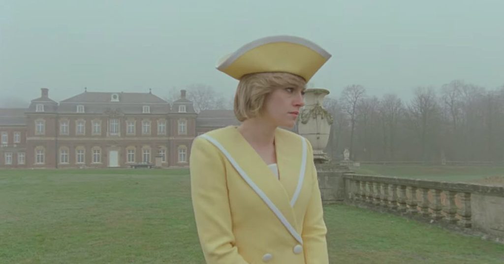 La colonna sonora di Jonny Greenwood si apre come classicamente britannica, per poi trasformarsi in un’inquietante sinfonia. Seguendo un’estetica simile a quella di Jackie, la direttrice della fotografia Claire Mathon (Atlantics, Portrait of a Lady on Fire) cattura Diana con primi piani invadenti, con il suo obiettivo che scruta le strazianti espressioni facciali della principessa. Mathon si interessa molto anche alle caratteristiche curate in modo inquietante della tenuta: il giardino uniforme, i movimenti esigenti dei servitori austeri e il cibo e gli abiti meticolosamente preparati, che contrastano con la caduta libera di Diana. Nel frattempo, il lavoro in costume della leggendaria Jacqueline Durran copre i più grandi successi degli abiti più noti di Diana, con una serie evocativa di mode che spesso parla del suo stato mentale.