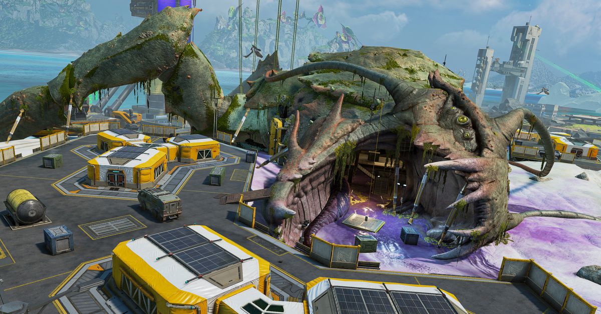 Come visto nel trailer della scorsa settimana, la bestia gambero jumbo attacca Storm Point e tutte le leggende mettono da parte le loro differenze per abbatterlo, sbucciarlo, sbucciarlo e attaccarlo. Per quanto riguarda la mappa, la Bestia abbattuta (come è noto il punto di interesse) si trova tra due aree di bottino di alto valore – North Pad e The Mill – e un terzo, Checkpoint, che è di livello medio posizione del bottino. I giocatori possono atterrare su di esso (o partire) tramite un cannone a gravità o zipline, o farsi strada all’interno attraverso la sua bocca o quattro grandi ferite. All’interno e intorno all’hulk morto, i giocatori troveranno tende e piattaforme lasciate dalla gente di Ecological Cleanup e Hazard Outreach (il loro lavoro è stato visto su King’s Canyon), fornendo sia copertura che opportunità per l’equipaggiamento.