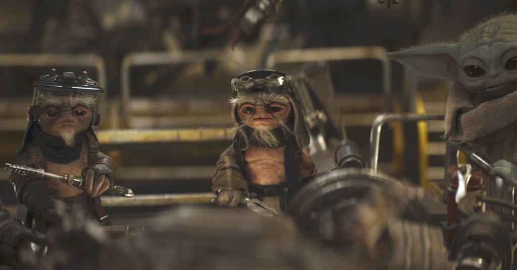 Tecnicamente, Babu Frik non è nella premiere della terza stagione di The Mandalorian. Quello che otteniamo è meglio: un’intera banda di specialisti di droidi proprio come lui (tutti doppiati anche da Shirley Henderson). Si chiamano Anzellans, una specie di minuscoli alieni eretti che sembrano un incrocio tra un gremlin (secco) e un primate. Din Djarin (Pedro Pascal) va da loro per vedere se riescono a ricostruire il droide cacciatore di taglie IG-11 (doppiato da Taika Waititi) che si è autodistrutto nella prima stagione dello show.