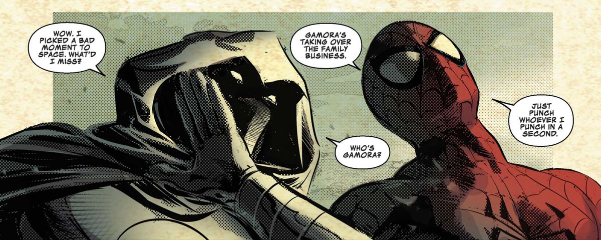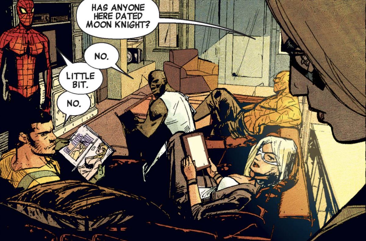 E così, l’eterna rivalità (a partire dal 2018) tra Moon Knight e Dracula continua come un’industria artigianale di meme. Moon Knight odia Dracula. Dracula inganna Moon Knight facendogli chiamare i Vendicatori. Moon Knight lancia “cazzate casuali” contro i suoi nemici. Cerca di indurre le persone a pensare che sia Silver Surfer. Questa versione memetica dell’eroe Marvel Comics è abbastanza grande da arrivare a Jimmy Fallon e abbastanza diffusa da raggiungere i creatori dello spettacolo.