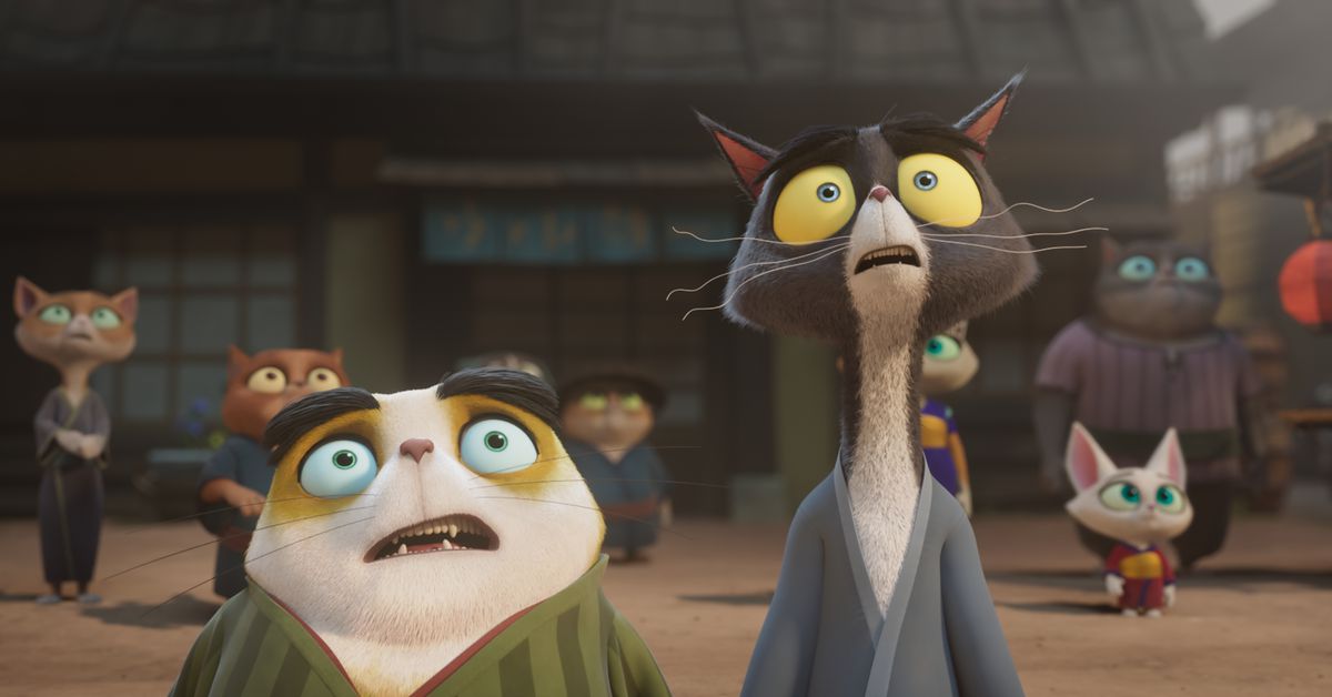 Ma anche così, almeno il film ha una trama più praticabile di quella che entrambi i film dei Minions sono riusciti. In un ibrido Giappone/Old West popolato principalmente da gatti, il malvagio felino Ika Chu (Ricky Gervais) cerca di distruggere il villaggio locale dall’interno inviando l’aspirante samurai Hank (Michael Cera) a fungere da loro protettore. Ika Chu presume che la gente del villaggio non accetterà Hank perché è un cane. Imperterrito dal pregiudizio della città e dalla propria inesperienza, Hank cerca l’assistenza del riluttante mentore Jimbo (Samuel L. Jackson) per aiutarlo a salvare la città dai banditi armati e sconfiggere Ika Chu per l’avvio.