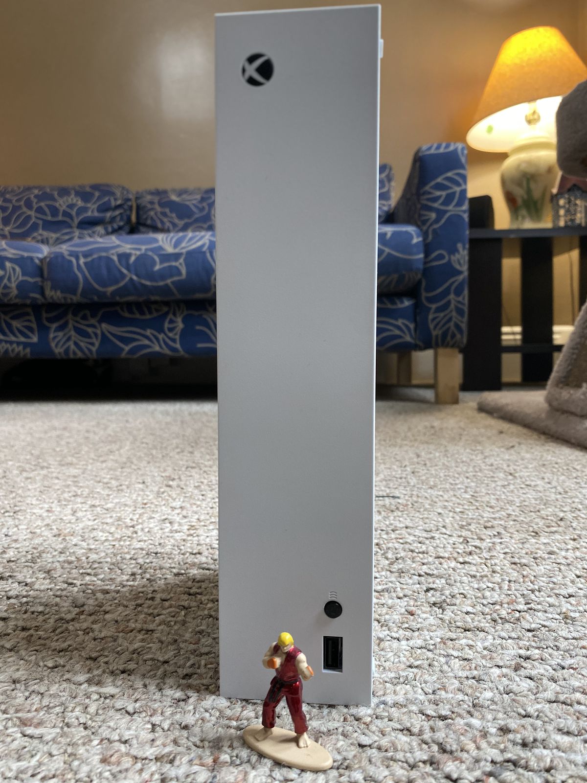 Poi di nuovo, la Xbox Series S è più piccola del mio gatto Warren Worthington, che si era nascosto sotto il divano e non voleva partecipare a questo servizio fotografico. (Pesa 11 libbre.)