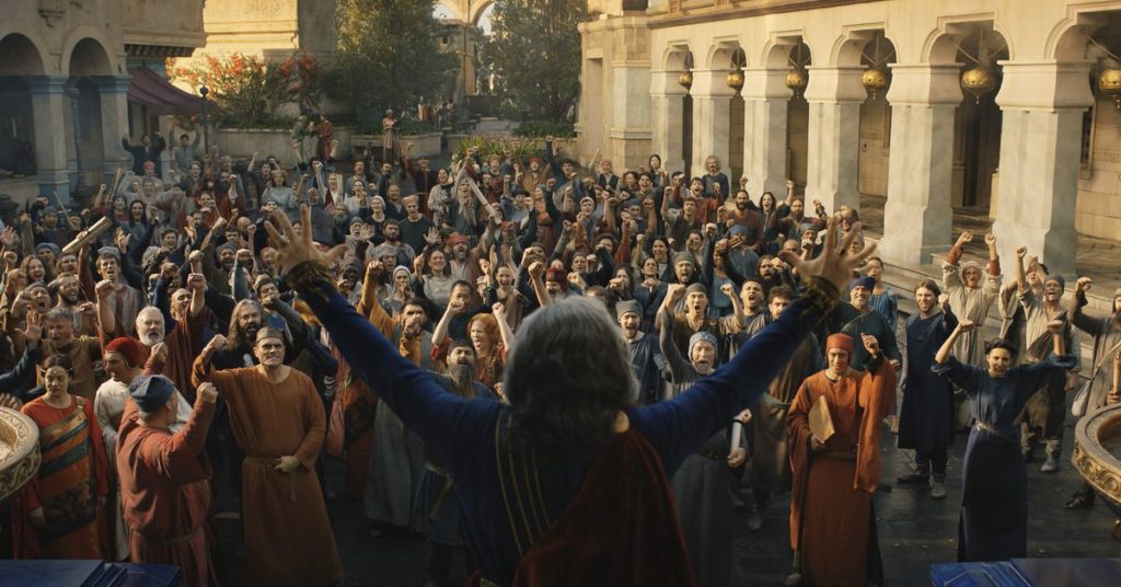 Nel frattempo, a Númenor, Pharazôn (Trystan Gravelle) rimane apparentemente dalla parte degli angeli; tuttavia, coloro che hanno familiarità con Il Silmarillion individueranno i segni del suo inevitabile cambio di marcia. Il più grande di questi arriva quando Pharazôn dimostra la sua abilità nel controllare una folla inferocita all’inizio di “The Great Wave”. A prima vista, questa è una buona cosa, poiché il consigliere della regina reggente disinnesca una potenziale rivolta. Eppure il discorso di Pharazôn alla folla gioca fortemente anche contro i pregiudizi anti-elfi dei suoi membri – potresti anche chiamarlo “fischio di warg” – in un modo che prefigura il futuro tumulto di Númenor con la stessa efficacia dello sbalorditivo di Míriel (Cynthia Addai-Robinson), visione infusa di petali.
