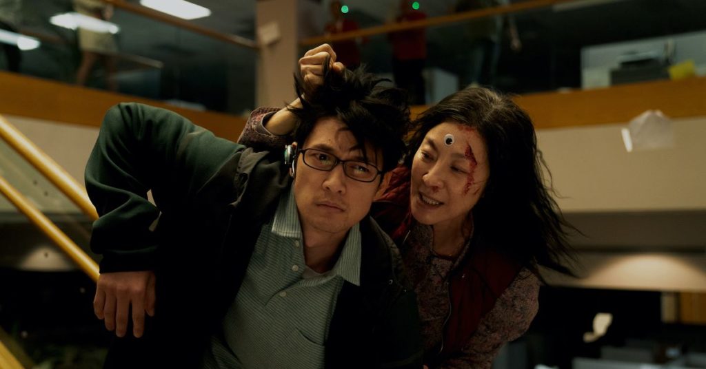 Invece di un supereroe, seguiamo un controllo del proprietario di una lavanderia a gettoni da parte dell’IRS. Invece di un multiverso di follia, otteniamo un multiverso di tristezza (scusate, non possiamo farci niente) mentre una madre cerca di abbattere quello che percepisce essere il nichilismo di sua figlia. Invece di un film d’azione privo di sesso e romanticismo, otteniamo una scena di combattimento in cui gli uomini traggono il loro potere da plug anale improvvisati e una storia sul profondo potere dell’amore.