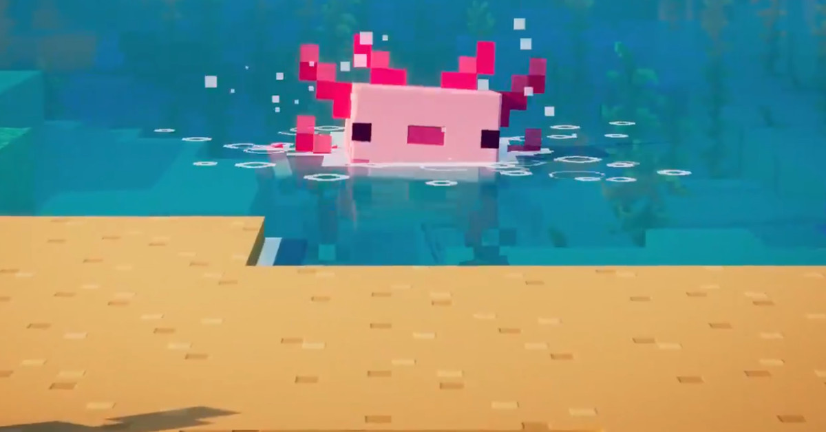 L’axolotl e la capra sono nuove creature trovate nel mondo, e sono molto carine, ma ognuna ha un problema. L’axolotl è un predatore che attaccherà i giocatori e alle capre piace speronare i giocatori con le loro piccole teste di capra, il che è un problema quando sei in cima a una montagna. Ci sono anche calamari luminosi per illuminare le acque e hanno uno speciale inchiostro fluorescente da raccogliere.
