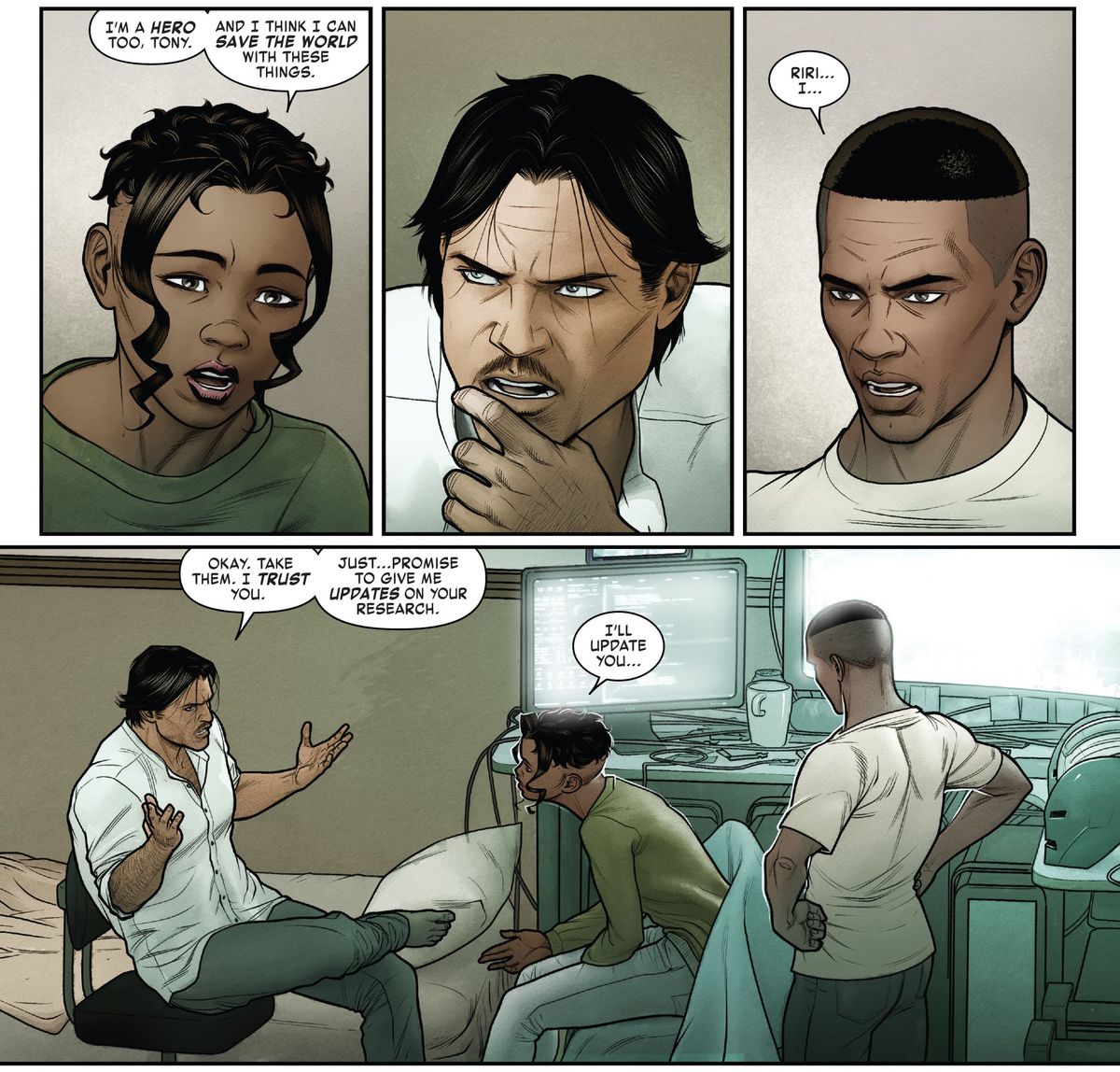 Ancora più interessante: alla fine del fumetto, Riri, che presto farà il suo debutto nel MCU in Black Panther: Wakanda Forever, riuscirà a mantenerli a tempo indeterminato.