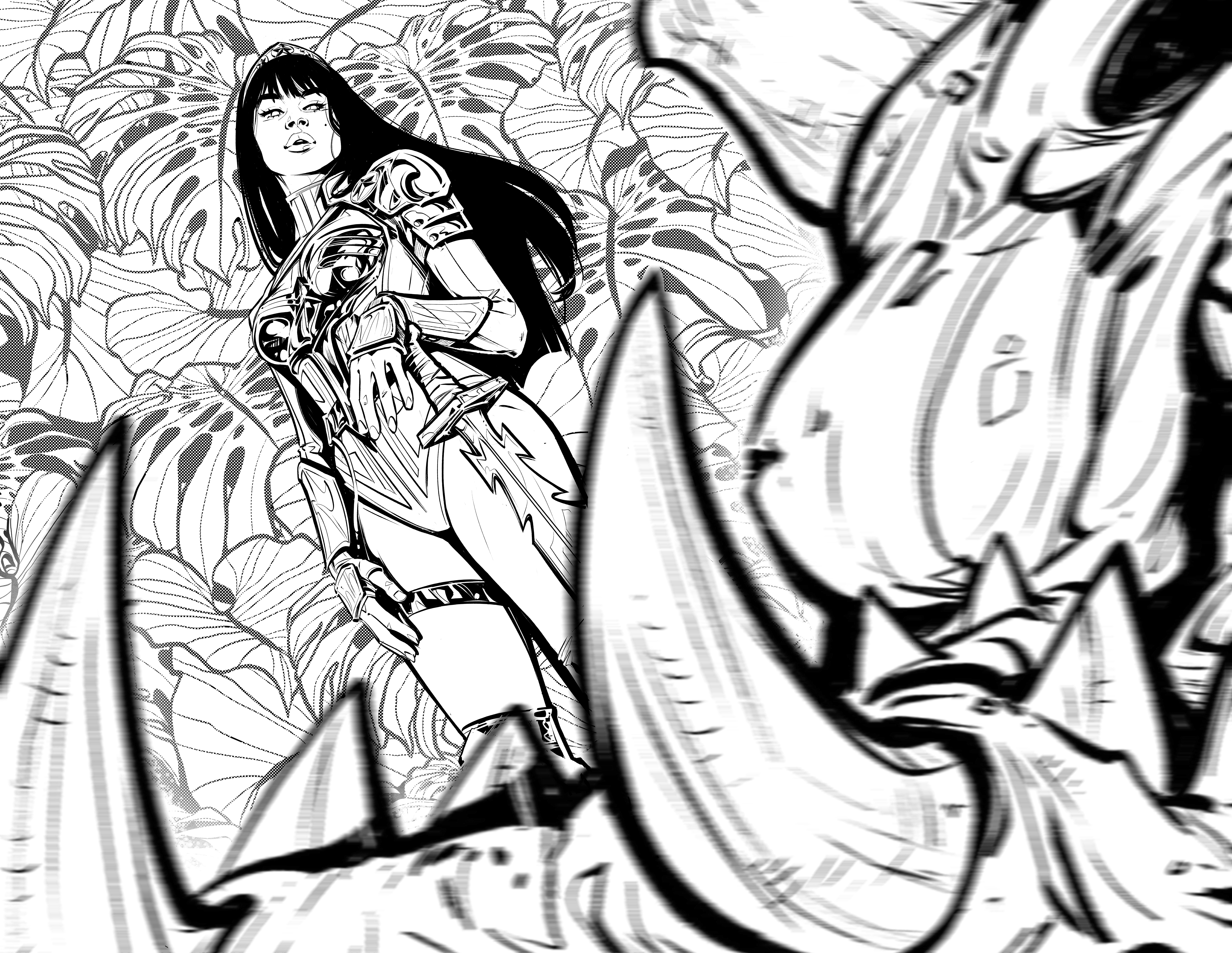 Jones says that the idea behind giving Yara a sword was simple: Sword fights are just fun to draw. But to give the weapon a link to ancient Brazil, she based its shape on a spear tip found at an Amazonian anthropological site, enlarged, elongated, and given a hilt.