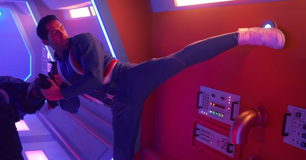 Sarah lo sfida, ovviamente, il che finisce male quando esprime un desiderio ascoltato dall’NPC Space Witch (Jason Maza), che usa la sua stregoneria intergalattica per trascinarla nel gioco nei panni di Jake (Elliot James Langridge), lo chef a bordo della nave di Max . Per mantenerla in vita, Cowboy deve prendere il controller e giocare al meglio che abbia mai giocato in vita sua, mentre Sarah / Jake ha un assaggio da vicino dell’odiosità di Max come persona invece che come PC di gioco telecomandato. Nel frattempo, l’intera banda deve evitare le incursioni del boss finale del gioco, Revengor (John Hannah), e del suo numero due, Shee (Lashana Lynch), la cui sinistra trama prevede un viaggio di sola andata sulla Terra per, ovviamente, vendetta. (Revengor è nefasto, ma apparentemente a scapito della creatività.)