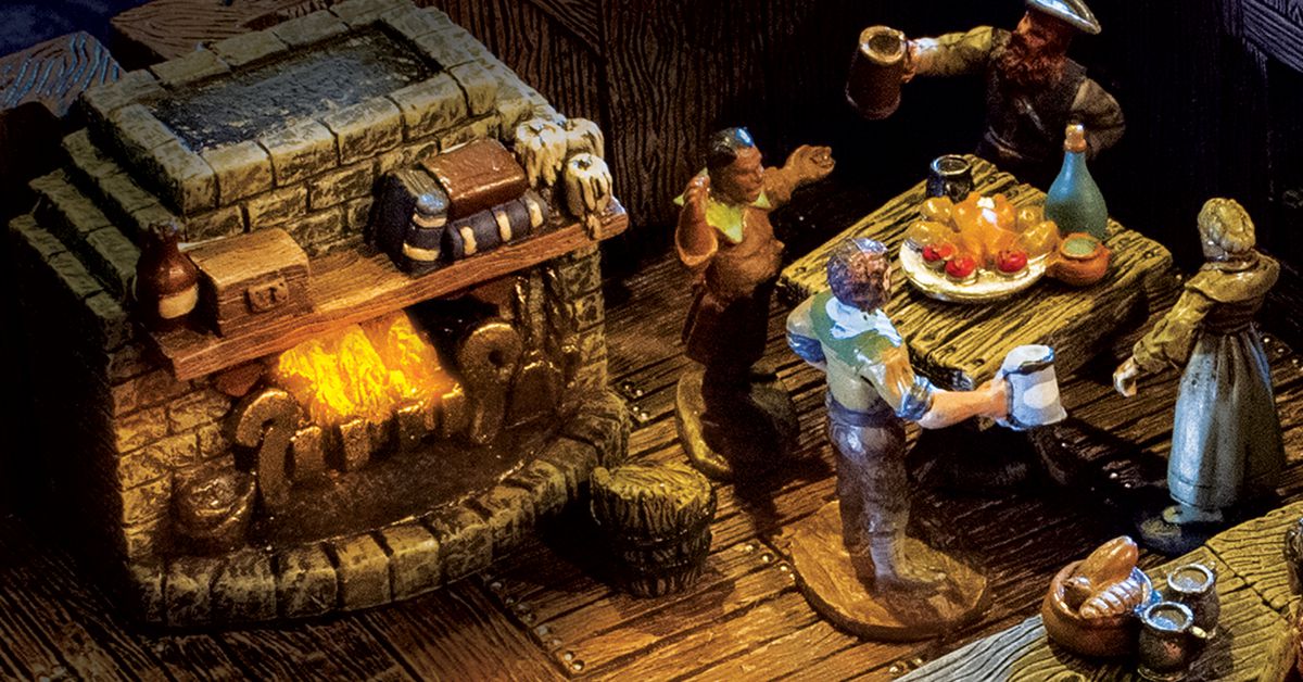 I nuovi kit includono effetti speciali, come questo generatore di fumo che pompa il fumo fuori dal camino.Foto: Dwarven Forge