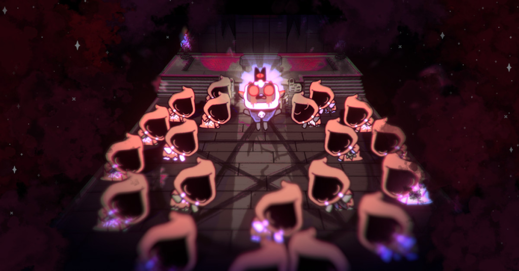 Cult of the Lamb, pubblicato da Devolver Digital e rilasciato l’11 agosto, è sia un roguelike di azione-avventura che un simulatore di sopravvivenza per la gestione di città e fattorie. La parte dello sviluppo della città è da dove provengono i confronti di Animal Crossing: il gioco è come New Horizons o Animal Crossing: City Folk, ma stai costruendo un culto invece di una città. Ha agricoltura, cucina e decorazioni, come sentieri accoglienti e santuari. Devi costruire relazioni e comunità all’interno del tuo culto; se i tuoi follower non credono in te, dissentiranno, portando soldi con loro. I seguaci devono essere cucinati e nutriti, avere un posto dove dormire e devi pulire la loro cacca. (Così tanta cacca.) Raccogli frutti di bosco, pesci per frutti di mare e pianti semi nel tuo giardino. Raccogli alberi per ricavarne il legno, che poi può essere consacrato in tavole per realizzare strutture e decorazioni più elaborate.