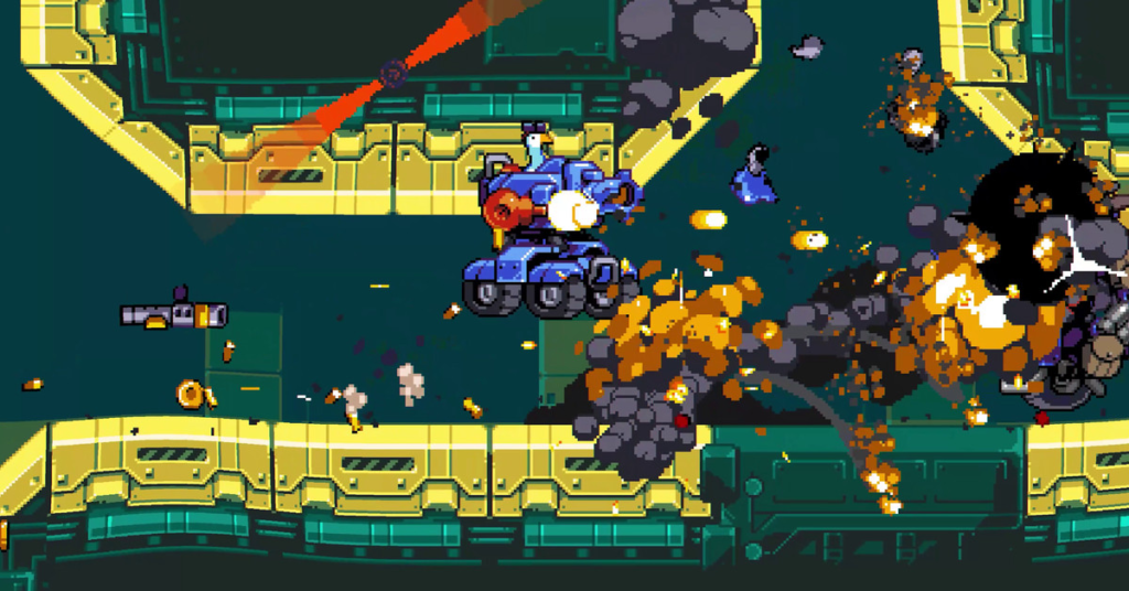Il trailer di Mighty Goose è un ottimo punto di vendita per il gioco. L’oca titolare ha grandi braccia e gambe di metallo rosso, incluso un cannone da braccio. Mighty Goose e i suoi amici da cortile – che un secondo giocatore meno fortunato può controllare – fanno esplodere legioni di robot e nemici di insetti a piedi, in carri armati, mech, aeroplani e uno scooter a una ruota.