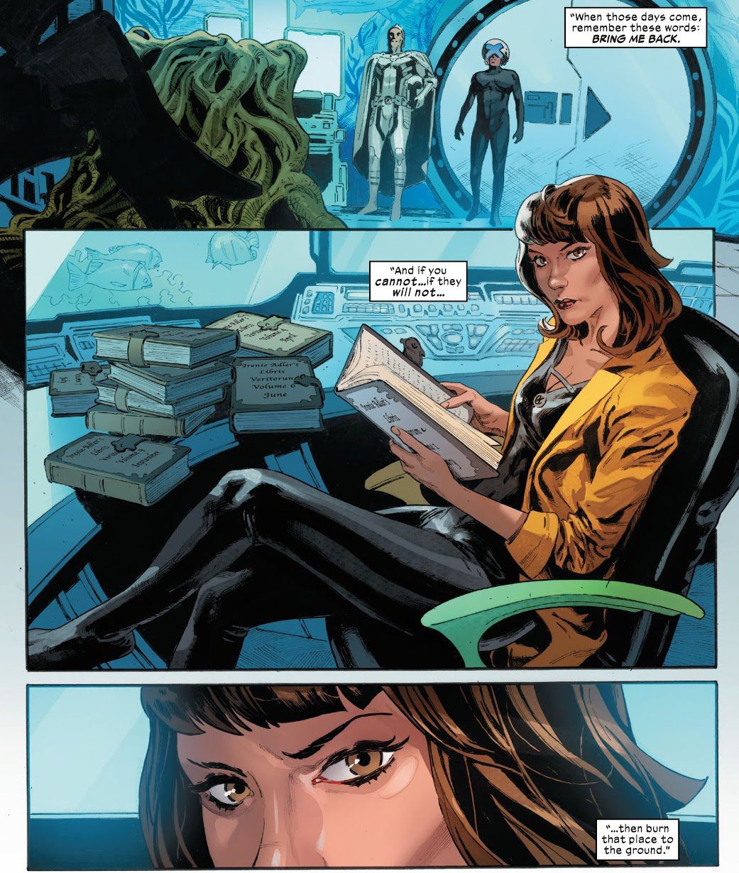 Vedi, Krakoa fa parte del piano del Professor X e Magneto con la mutante reincarnante Moira MacTaggert, che porta rancore verso Destiny e tutti i mutanti precognitivi. Hanno silenziosamente impedito a qualsiasi precog mutante di ricevere il dono della resurrezione mutante. E a quanto pare l’unico precog mutante di cui qualcuno si preoccupa abbastanza da spingere è Destiny, la defunta moglie di Mystica.