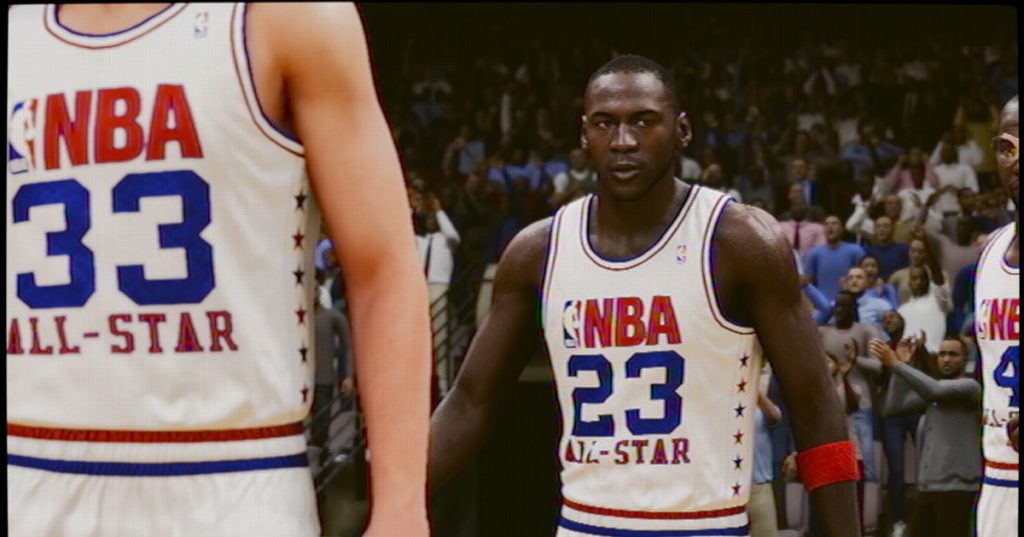 Per coloro che potrebbero desiderare un piccolo assaggio dell’immersione in MyNBA Eras, la Jordan Challenge è perfetta. La vetrina, che abbiamo già visto in anteprima in grande dettaglio, è una presentazione perfetta per l’epoca di 15 giochi della sua carriera, completa di un look and feel televisivo che include chiron vecchia scuola, CRT e filtri della linea di scansione e persino commento di uno degli annunciatori effettivi che hanno seguito la maggior parte della carriera di Jordan, Mike Fratello della NBC. Avrai tutte queste funzionalità per i tuoi giochi anche in MyNBA Eras. Quello che non otterrai sono le riproduzioni mozzafiato – voglio dire, virtuose – dei filmati dei momenti salienti di Jordan quando vinci un gioco a tre stelle.