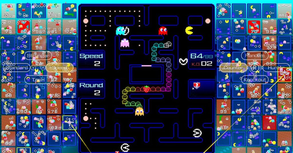 Per le prime ore, la strategia sembrava quasi impossibile da formulare. Il gioco ti dà un po ‘di controllo sui tuoi attacchi e su chi miri, ma non si preoccupa di spiegare un accidente di come funzionano. Si scopre che la tua risorsa più preziosa in Pac-Man 99 è la tua velocità. I tuoi attacchi sono tutti dedicati a rallentare tutti gli altri inviando i tuoi Attack-Pac e le tue opzioni su come usarli sono disposte su entrambi i lati dello schermo.