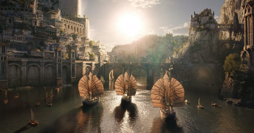 È logico che Galadriel si ritrovi dopo essere stato così vicino a Valinor. E segue anche la cultura marinara di Númenor, poiché la loro civiltà era rinomata per l’abilità sia dei suoi costruttori navali che dei marinai. L’abilità nautica dei Númenórean permise loro anche di fare numerosi viaggi nella Terra di Mezzo prima dell’ambientazione de Gli Anelli del Potere, nonostante la loro relativa distanza dal continente (ne parleremo più avanti).
