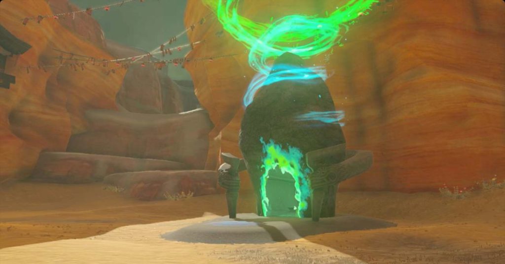Potresti riconoscere questo luogo come il luogo in cui hai combattuto Master Kohga del Clan Yiga in Breath of the Wild. Troverai questo santuario (e l’abisso verso le profondità) direttamente a est della Gerudo Highlands Skyview Tower.