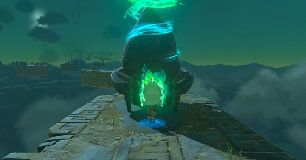 Dopo esserti diretto al Santuario di Taninoud nell’arcipelago del cielo di Hebra orientale, dovrai usare Ultrahand per completare una missione di lancio aereo. È come Operazione Dumbo Drop ma invece di un elefante è un cristallo verde del santuario.