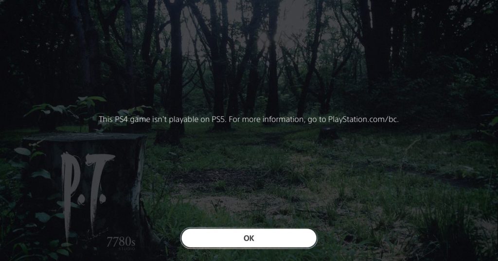 Sony aveva precedentemente avvertito che alcuni contenuti (comprese le demo di giochi, che includevano PT) potrebbero non essere compatibili sulla nuova console. Il teaser riproducibile di Silent Hills non compare nell’elenco dei titoli non supportati nella pagina di supporto per la compatibilità con le versioni precedenti di PS5 di Sony.