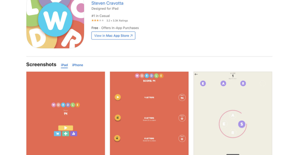 Il browser game virale Wordle, creato da Josh Wardle, consente ai giocatori sei tentativi di indovinare una parola di 5 lettere. Ha un semplice gancio che lo rende facile da giocare e facile da costruire un’abitudine quotidiana. La popolarità del gioco ha ottenuto la copertura di una serie di importanti pubblicazioni, che quasi sicuramente hanno portato le persone a cercare il nome del gioco nell’App Store, come ha spiegato Cravotta nel suo thread su Twitter.