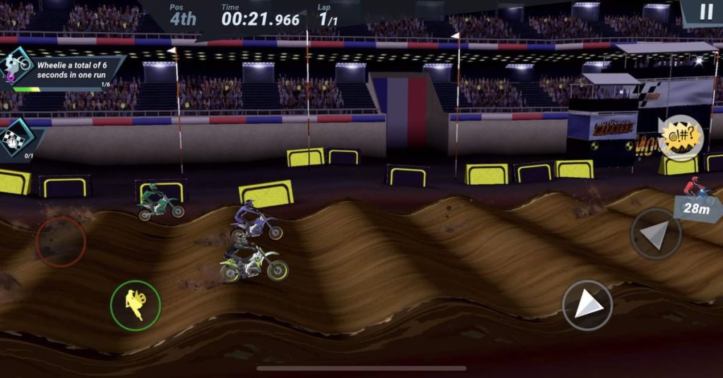 Il john. Mad Skills Motocross 3 è progettato per entusiasmare i giocatori dove è più probabile che prendano il gioco. La serie, della Turborilla AB con sede in Svezia, conta 55 milioni di download rispetto ai suoi due giochi precedenti, quindi di sicuro hanno dati scientifici che dicono che la gente ama correre con una moto da cross mentre sono sulla lattina. E perché no, batte la lettura di Apple News o il doomscrolling su Twitter.
