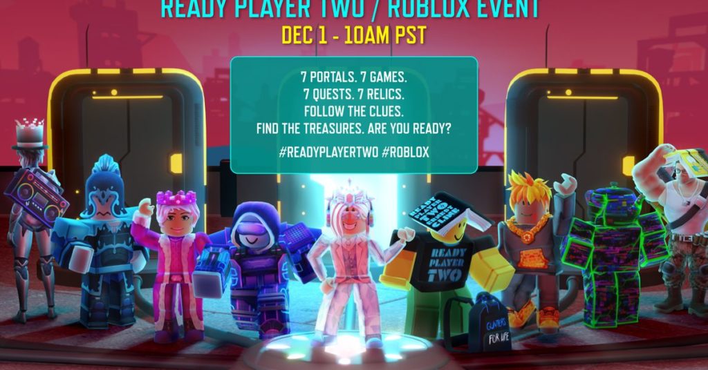 Ready Player Two, il sequel del bestseller della cultura nerd Ready Player One, uscirà il 24 novembre. Un evento digitale è in corso sulla piattaforma Roblox per celebrare il lancio; è una caccia al tesoro a tema Oasis, che si svolgerà in sette esperienze accessibili. I giocatori possono anche guardare una sessione virtuale di domande e risposte con l’autore Ernest Cline e il CEO di Roblox Dave Baszucki il 1 ° dicembre alle 10:00 PST.