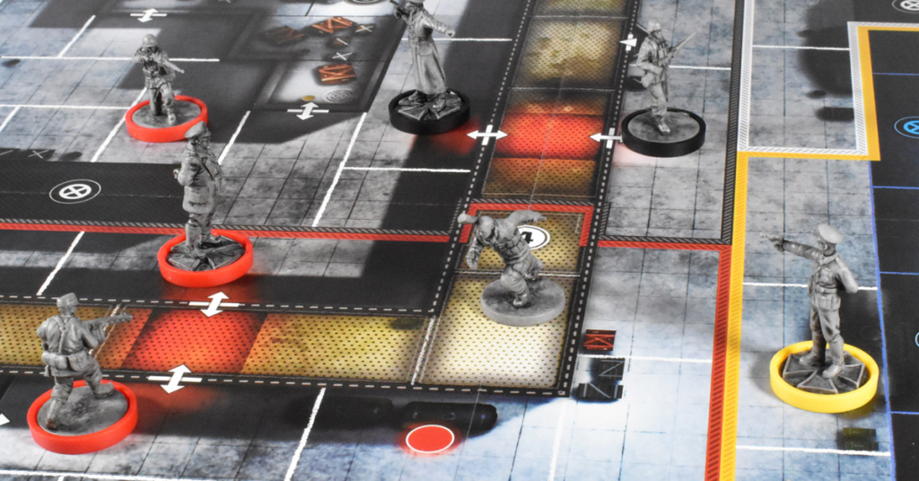 Quindi, l’obiettivo in realtà non è sparare e uccidere nessuno degli ufficiali o delle guardie. È semplicemente raggiungere due punti sul tabellone prima che scada il tempo. Questo è un gioco di movimento nascosto, in altre parole, e grazie a un paio di regole ponderate, il giocatore del Cecchino raramente termina un round completamente inosservato o senza ostacoli. Il risultato netto è che la maggior parte delle mosse a fine partita in Sniper Elite: The Board Game può essere una proposta improvvisata, in cui la stessa azione in precedenza ha comportato meno suspense e minori conseguenze.