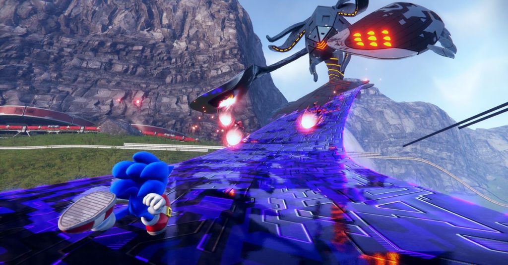 All’inizio è un ciclo divertente. Mentre le isole tendono ad essere abbastanza vuote in generale, a parte i nemici, sono spesso un’emozione da navigare. Ci sono sezioni platform galleggianti praticamente ovunque guardi, con dozzine di piattaforme rimbalzanti, pareti scalabili e anelli da collezionare. È uno spettacolo strano avere elementi familiari della serie in contrasto con spazi semplici e aperti che non si assomigliano per niente. Ma una volta che li stai attraversando a tutta velocità, sembrano sezioni dei tuoi soliti livelli di Sonic con diverse angolazioni della telecamera, percorsi che si intersecano e così via. Sono adeguatamente propulsivi, anche se i controlli non sono sempre così reattivi come si spera, il che mi ha portato a fallire le sezioni più e più volte.