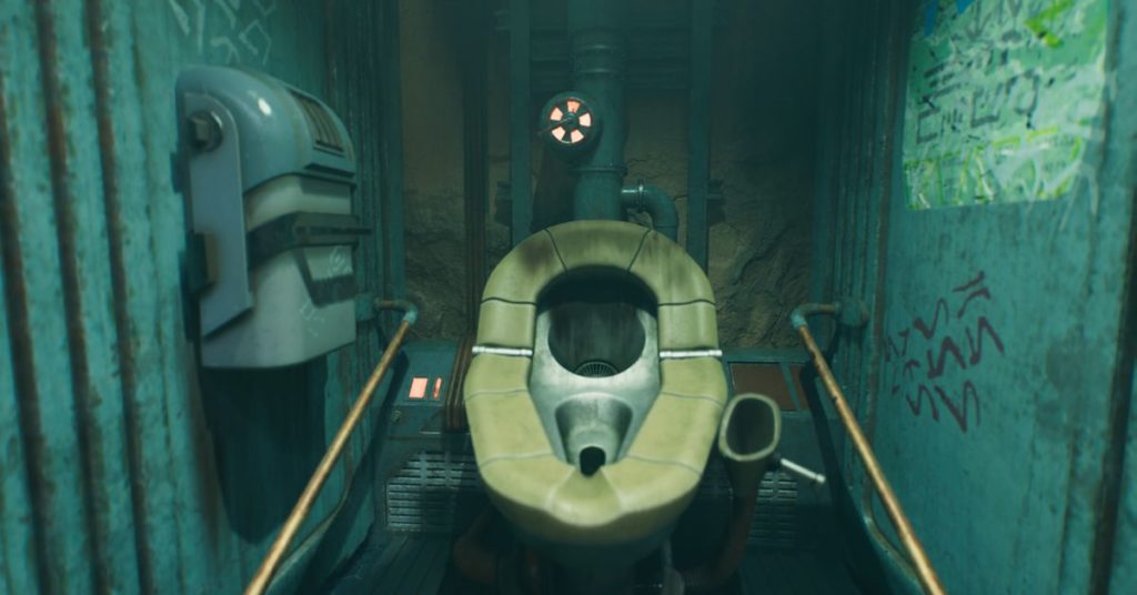 I bagni in Jedi: Survivor, invece? Sono il vero affare e probabilmente una rappresentazione (un po ‘sdolcinata) di come va la maggior parte delle persone nell’universo di Star Wars. Puoi trovarlo all’inizio del gioco, proprio accanto all’ingresso principale del Pyloon’s Saloon (la cantina di Greez) sul pianeta Koboh.