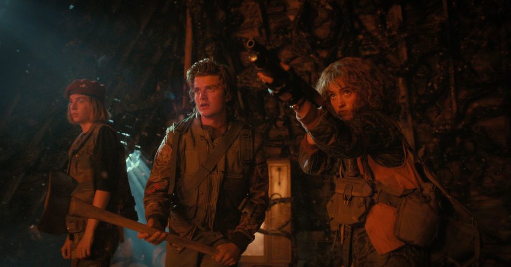 Nel penultimo episodio di 90 minuti della quarta stagione di Stranger Things, i suoi eroi – per lo più adolescenti ora, dopo sei anni di invecchiamento nel mondo reale dalla prima della serie – si preparano a combattere i demoni. Martellano chiodi nei coperchi dei bidoni della spazzatura, segano la canna di un fucile e modellano lance con coltelli e bacchette. Non è la loro prima volta; stagioni precedenti costruite su resa dei conti simile. Ma è il più cupo. Mentre le precedenti battaglie culminanti in Stranger Things sono state condotte con gli strumenti dei bambini, come fuochi d’artificio e radio CB improvvisate, questa volta i bambini si stanno armando con una forza letale. Con una stagione rimanente, i creatori della serie Matt e Ross Duffer si prendono momenti come questo per sottolineare come è cresciuto il cast dello show, ma mostra anche quanto sia stata limitata la loro immaginazione per loro.