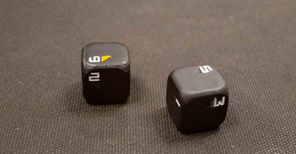 Al centro del sistema Teburu c’è un tabellone da gioco rettangolare, quasi delle stesse dimensioni del normale tabellone Monopoly; è solo che questo è ricoperto da un lato da un sottile foglio adesivo prestampato pieno di sensori. Un gioco da tavolo compatibile va in cima. Sul fondo di ciascuno dei tuoi pezzi ci sono tag RFID, che il tabellone di gioco può rilevare mentre si muovono sulla sua superficie. Attaccato al tabellone di gioco c’è un dongle con due antenne: una che si collega ai chip RFID e un’altra per il Bluetooth. Questo è per i dadi, due semplici dadi a sei facce abbastanza intelligenti da sapere da che parte è in alto e per altri dispositivi compatibili con Bluetooth come altoparlanti, tablet e smartphone. L’oggetto più complicato è un plinto singolare e più elaborato per le miniature più grandi – chiamatele miniature dei boss – che si illumina con una luce LED multicolore in quattro punti lungo il bordo. Ecco fatto: quattro dispositivi periferici leggermente intelligenti, per gli standard odierni, tutti collegati agli smartphone che tutti tengono comunque in tasca tutto il giorno.