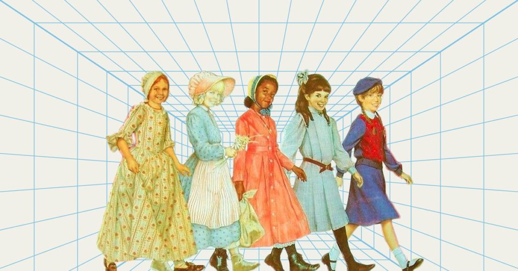 Il nostro laboratorio di informatica era nel seminterrato. C’era una specie di muffa che cresceva nell’umidità dell’Ohio e mi faceva prudere gli occhi. Ma c’erano dei giochi – edutainment, immagino che dovrei qualificarmi, data la netta distinzione di Internet tra giochi e giochi – a distrarmi. È stato difficile battere la soddisfazione del simulatore di cassa in Mavis Beacon insegna a digitare. Un numero infinito di pionieri è morto di dissenteria in Oregon Trail. Mia sorella ed io percorrevamo spesso il Sentiero insieme, nominando e creando storie sui nostri avventurieri pixelati, diventando poetici sulle loro lapidi. E se c’era un gioco che ci ha dato libero sfogo per esplorare questo lato drammatico, è stato The American Girls Premiere. La versione che ci è stata regalata è stata la Special Edition Collector’s Set, che è costata ben 10 dollari in più ed è stata confezionata in una lattina elegante destinata a diventare un portapenne. Le immagini in rilievo delle principali American Girls™ sulla copertina – Felicity, Josefina, Kirsten, Addy, Samantha e Molly – contenevano una promessa in 3D di storie da riscrivere e scrivere di nuovo, per definire (apparentemente) da noi stessi cosa significasse essere una ragazza ed essere americana. Non che una ragazza delle scuole medie dell’Ohio lo riconoscesse in quel momento.