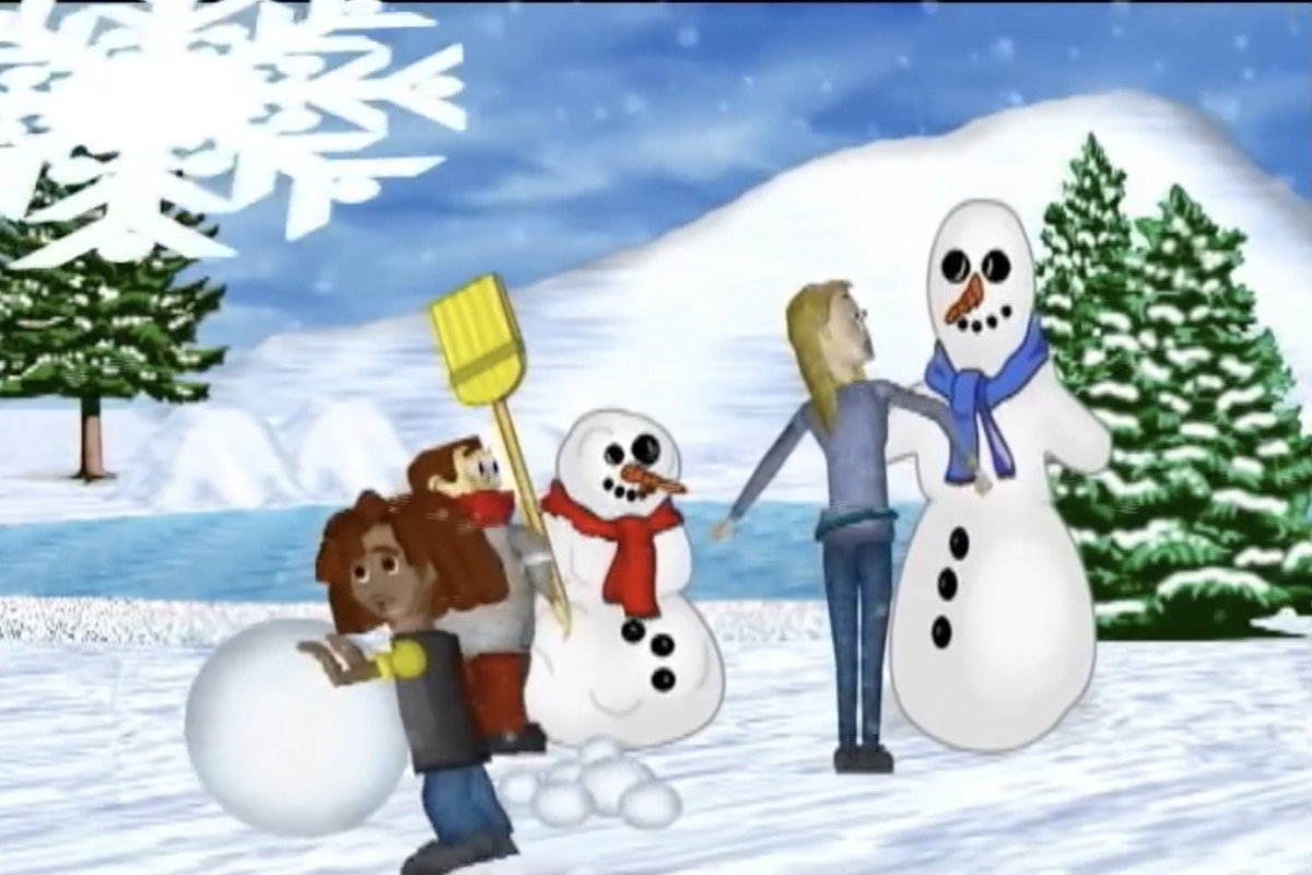 The heartwarming story, festive music, and cute animation were nowhere to be found. This was a surreal vision of the Christmas special on par with Plan 9 from Outer Space or The Room. In Rapsittie Street Kids, characters’ bodies had the blocky stature of an upright juice box. Their faces barely registered as human, in a queasy contrast with their realistically flesh-colored lips. The soulless world around them was made of muddy, repeating textures painted onto 3D objects, like the Matrix by way of a GeoCities page.