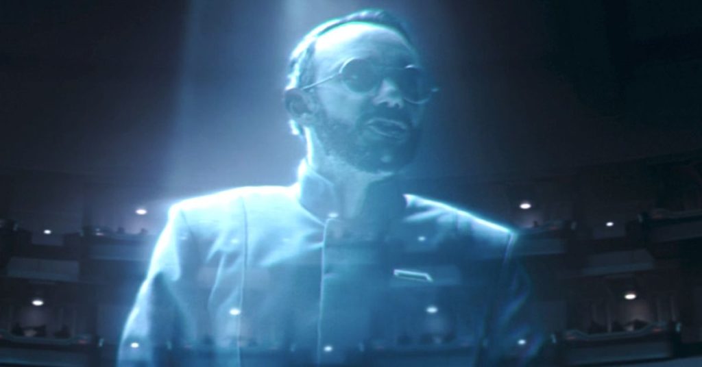 Dopo un’apertura ricca di azione con Din e Bo-Katan, “The Convert” reintroduce il Dr. Pershing, visto per l’ultima volta aiutare Moff Gideon a costruire una flotta di Dark Trooper e tenere in ostaggio Grogu nel finale della seconda stagione di The Mandalorian. Nella sequenza temporale della terza stagione, Pershing è su Coruscant, dopo aver disertato nella Nuova Repubblica in nome della scienza.