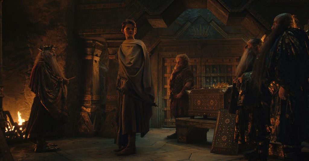 È un efficace complotto di Brändström e Cahill, anche se non troverai nulla di lontanamente simile in Il Signore degli Anelli o nelle sue appendici. JRR Tolkien dipinge un ritratto piuttosto lusinghiero di Durin III (Peter Mullan) nei suoi romanzi, e quel poco che sappiamo di Durin IV non include tendenze insurrezionali. Ma anche Tolkien non esclude esplicitamente una Battaglia dei Durin, e il concetto alla fine funziona perché è basato su temi chiave dei libri, come l’amicizia e la cooperazione tra specie. Dà anche a Mullan la possibilità di mostrare le sue capacità di recitazione del personaggio, attraverso momenti come Durin III che condivide un ricordo di suo figlio malaticcio come un bambino malaticcio che fa molto per sviluppare quella che rischiava di essere una parte sottilmente abbozzata.