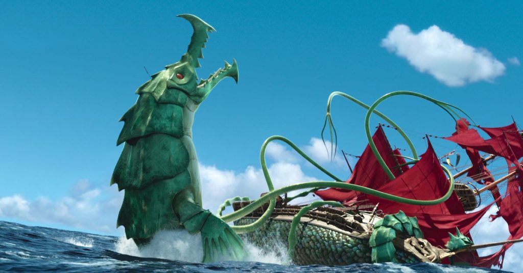 In particolare, questa storia d’avventura ambientata nell’oceano distribuisce mega galloni di acqua animata dal computer con grande abilità. In superficie, mentre le navi da caccia si aggirano per il mare alla ricerca di temibili bestie che presumibilmente minacciano l’umanità, l’acqua luccica e ribolle. Sotto, quando i marinai vengono occasionalmente trascinati giù per affrontare enormi creature kaiju, l’oscurità crea una bellezza eterea e spartana. Le creature stesse sono una meraviglia dal design economico: abbastanza fumettistiche per espressioni leggibili, abbastanza imponenti da mettere un buon spavento momentaneo nel pubblico più piccolo.