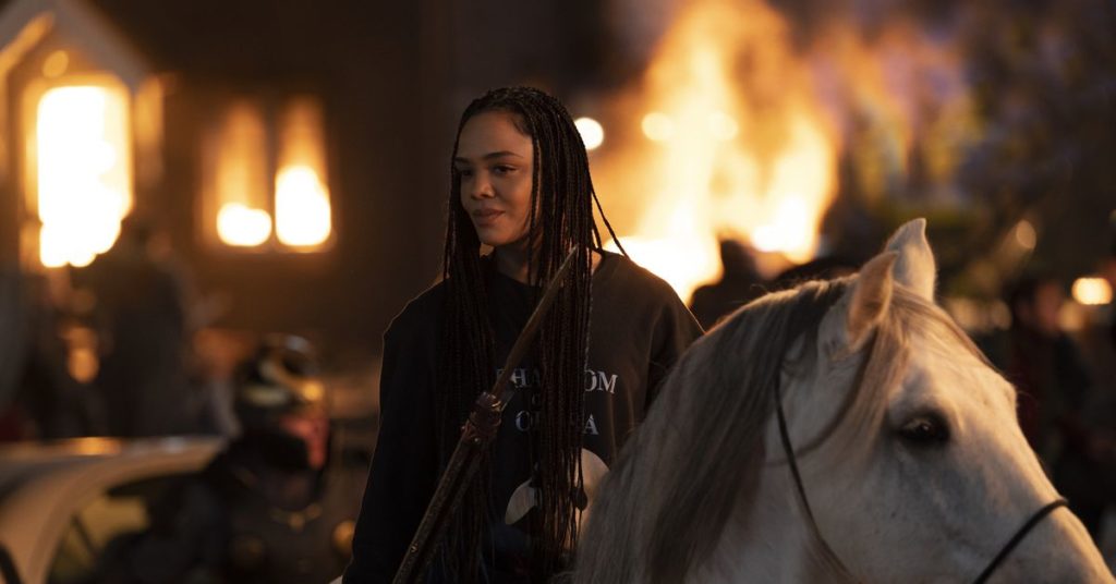 C’è la sensazione che sia sollevata dall’affrontare finalmente un problema che può essere colpito in faccia con una spada, ma Waititi e la co-sceneggiatrice Jennifer Kaytin Robinson non tirano su quel filo. È abbastanza ragionevole che volessero mantenere la storia più coinvolta nella solita lotta di Thor per affrontare un mondo complicato pur essendo un personaggio semplice – e sulla sua ex Jane Foster (Natalie Portman), che vive contemporaneamente come un supereroe divino e muore di cancro. Ma Valkyrie è così sottosviluppata e poco specifica in questo film che fondamentalmente è solo un sistema di supporto privo di lamentele e privo di desideri personali per evidenziare il dolore di Jane – un ruolo irritantemente familiare sia per i personaggi queer che per i personaggi di colore.