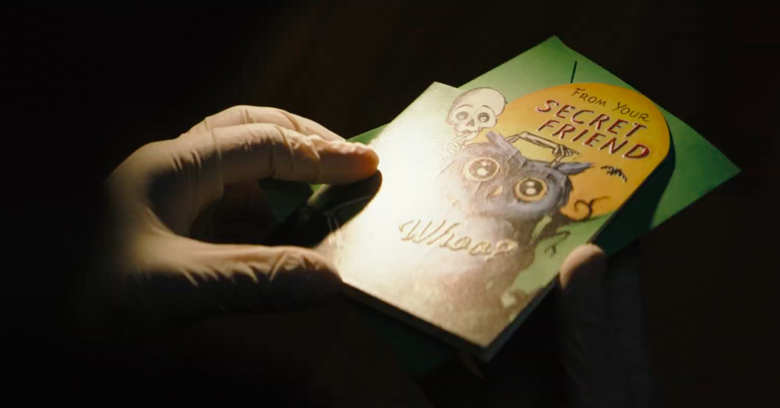 Ad ogni modo, in The Batman, l’Enigmista (Paul Dano) è definito come una specie di minaccia in stile zodiacale che confeziona il suo alfabeto. Lascia un biglietto di auguri su una vittima di omicidio, la cui domanda è “Cosa fa un bugiardo quando è morto?” E la risposta è un insieme di 11 simboli.