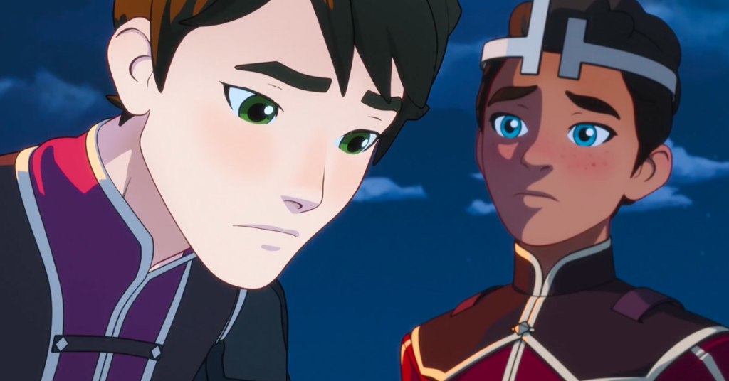 Sappiamo da tempo che ci sarà un salto temporale di due anni in questa nuova stagione, che corrisponde al divario nella vita reale tra le stagioni. L’ultima stagione di The Dragon Prince è uscita su Netflix nel 2019. Ora i personaggi sono un po’ più vecchi. Il principe adottivo Callum è l’alto mago del regno, mentre il suo fratellino si è fatto avanti come re. Nel frattempo, l’assassina elfica Rayla si è separata dagli umani, alla ricerca del cattivo…