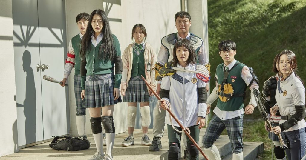 All of Us Are Dead è ambientato in un liceo che diventa il punto di partenza per un’epidemia virale di zombi, grazie alle decisioni sbagliate di un insegnante di scienze. A quanto pare, però, i film di zombi in cui sono cresciuti questi ragazzi sono meno La notte dei morti viventi e più Treno per Busan, quindi non cadranno senza una lotta piuttosto seria.