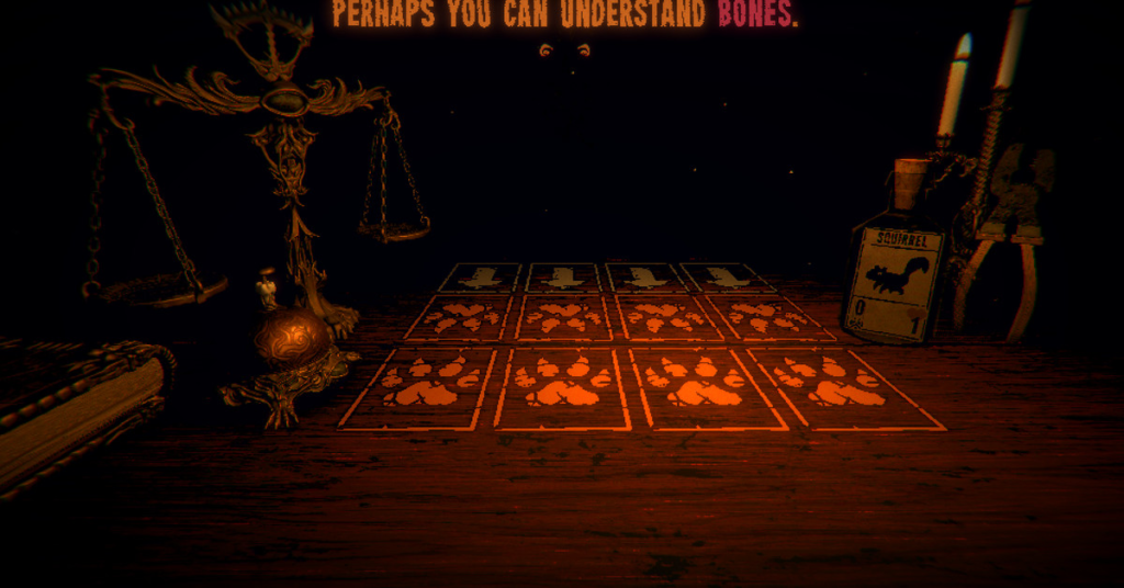 Per quanto riguarda la domanda dell’orrore: non ho riscontrato alcun salto spaventoso nel mio playthrough, solo immagini cupe e un’atmosfera spettrale. I momenti peggiori sono i momenti di body horror, che, sebbene non vengano mostrati esattamente sullo schermo, sono piuttosto viscerali. All’inizio, acquisisci un paio di pinze che puoi usare per far pendere la scala letterale a tuo favore, strappando uno dei tuoi denti e posizionandolo dalla parte del tuo avversario. Questo accade da una prospettiva in prima persona e l’audio di accompagnamento è, beh… piuttosto intenso. La buona notizia è che questi momenti sono abbastanza facili da individuare prima che accadano, quindi è improbabile che ti prendano alla sprovvista. Detto questo, se l’autoviolenza in prima persona sembra eccessiva, affronta questo gioco con discrezione.