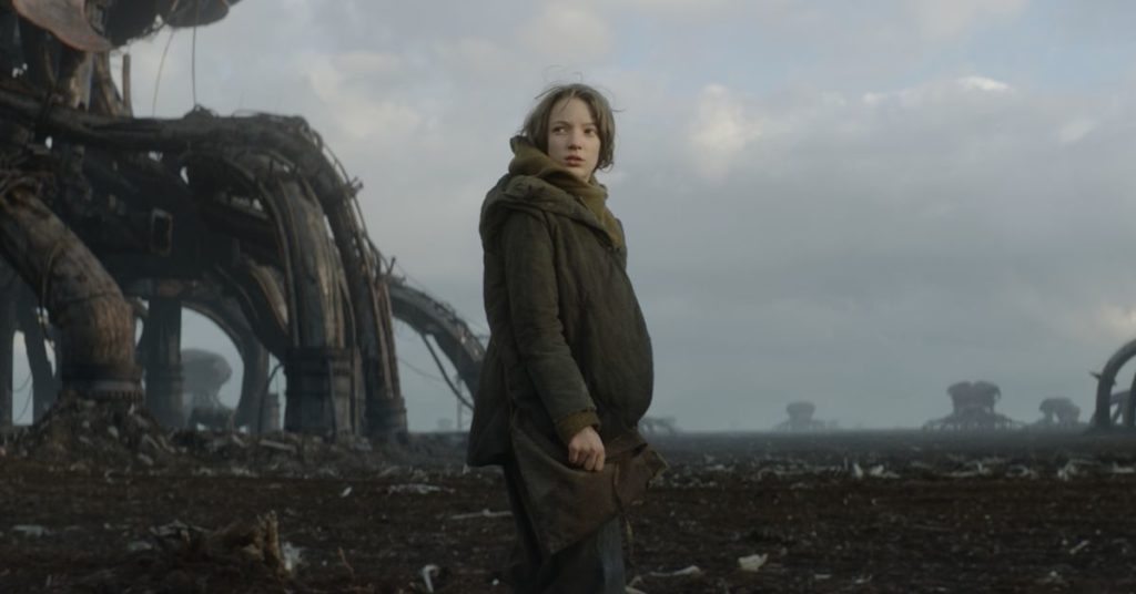 Ma ciò che rende Vesper memorabile non è l’unicità delle sue idee, è l’unicità di come vengono espresse. Le distinzioni iniziano con la performance di Chapman nel ruolo del protagonista; non è l’eroina feroce e combattiva di tante storie distopiche del futuro, ma una sopravvissuta a testa in giù e diffidente che anche a 13 anni ha chiaramente imparato la cautela e la cura. Chapman e la sceneggiatura danno a Vesper una forma di grinta che sembra insolita per questo tipo di storia. Ogni sua mossa riconosce la sua storia, da giovane adolescente con troppe responsabilità e troppe libertà. Suo padre potrebbe disapprovarla, ma non può fare nulla per impedirle di fare ciò che vuole. Lei scusa le sue scelte con lui, ma le fa senza scuse o rimorsi. È mite e volitiva allo stesso tempo, ed è una combinazione intrigante.