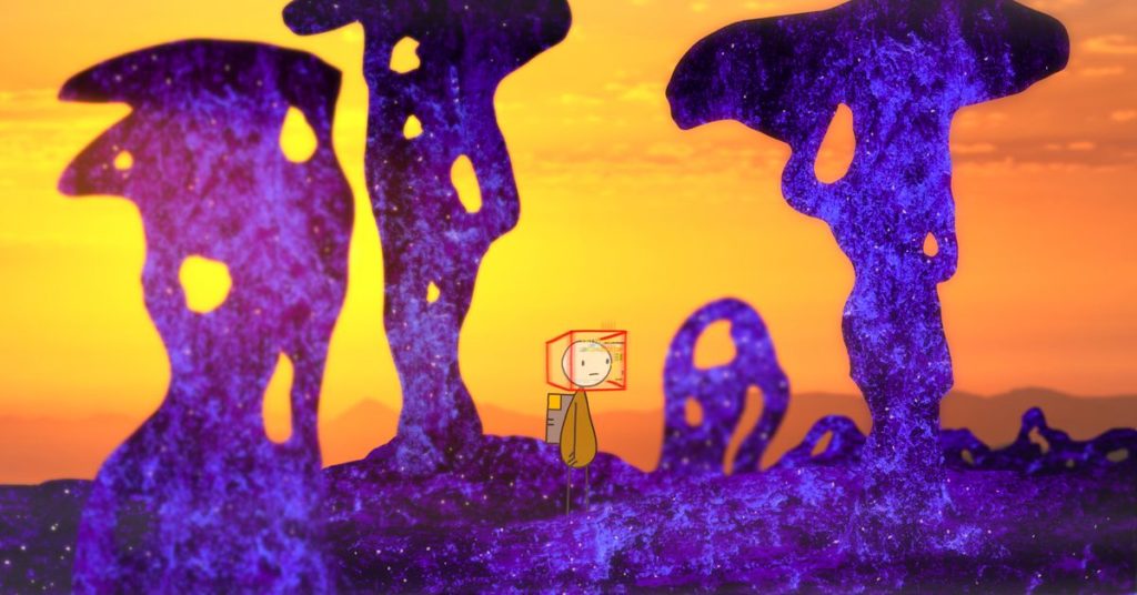 Un altro aspetto particolarmente degno di nota del terzo episodio di World of Tomorrow è lo sfondo del film e le animazioni del layout. I due film precedenti erano esercizi di astrazione espressionista, con piani fluttuanti e masse globulari di rumore visivo che hanno una modesta somiglianza con i disegni astratti dell’era spaziale di Chuck Jones (come Hare-Way to the Stars del 1958), ma incrociati con un Kandinsky la pittura prende vita. Allo stesso tempo, si sentono come qualcosa di inconfondibilmente creato da Hertzfeldt. Hertzfeldt amplia l’ambito visivo dell’universo della serie utilizzando sfondi e trame più fotorealistici per rappresentare mondi alieni e possibilità temporali adiacenti.