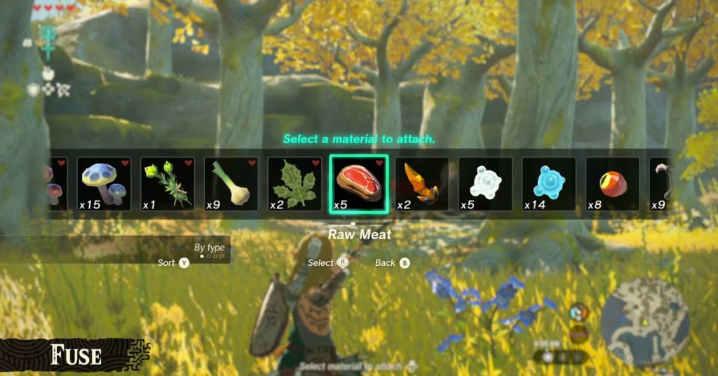 Nel video, il produttore di Zelda Eiji Aonuma ha mostrato la nuova abilità Fuse di Link, che gli consente di combinare due oggetti in qualcosa di nuovo con abilità uniche derivate dalle caratteristiche degli oggetti in questione. Ha dimostrato la funzione combinando vari oggetti con una freccia, ad esempio fondendo White Chuchu Jelly in una freccia la trasforma in una freccia di ghiaccio. Mentre Aonuma scorreva il menu per mostrare le opzioni di fusione, gli passò sopra un pezzo di carne cruda.